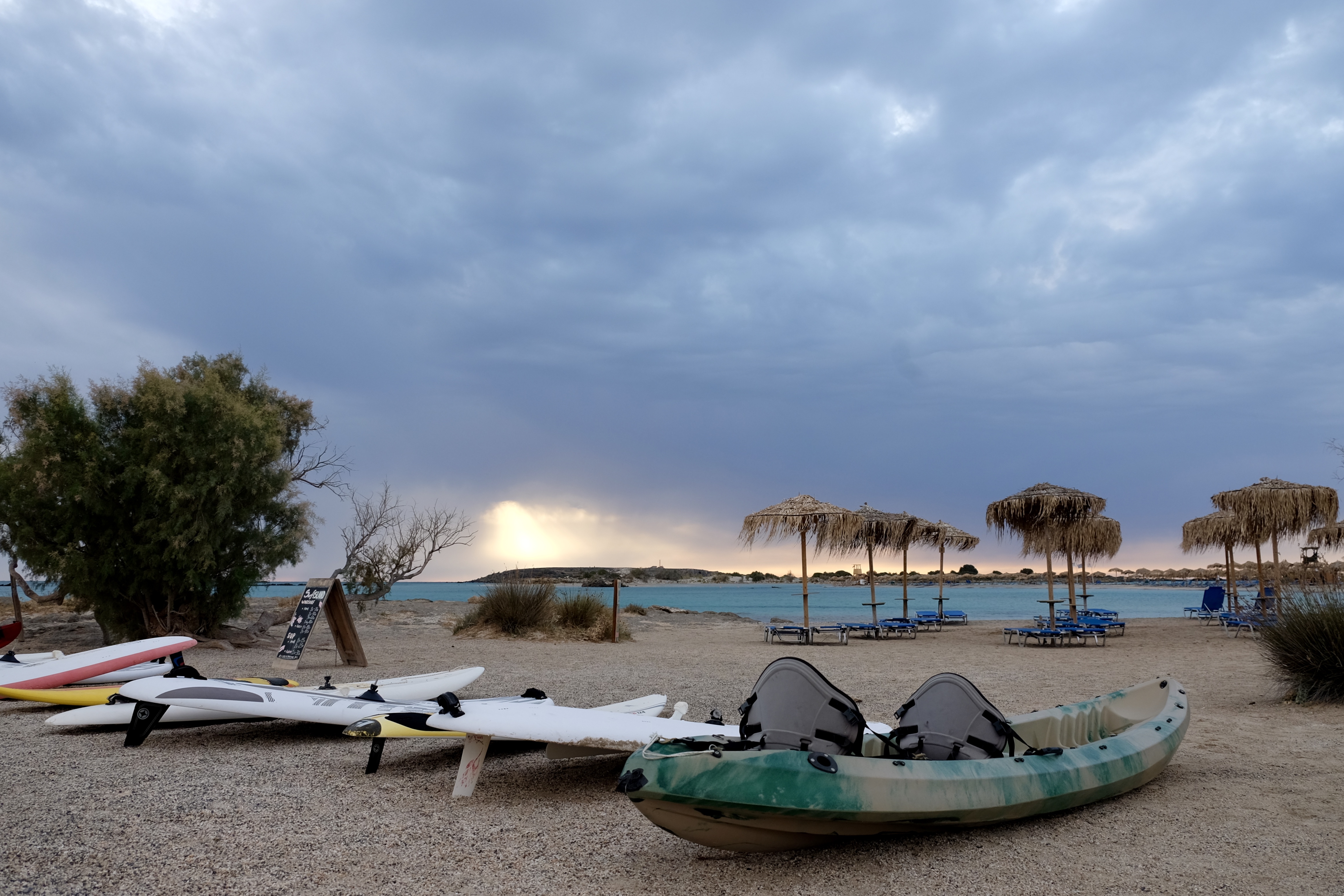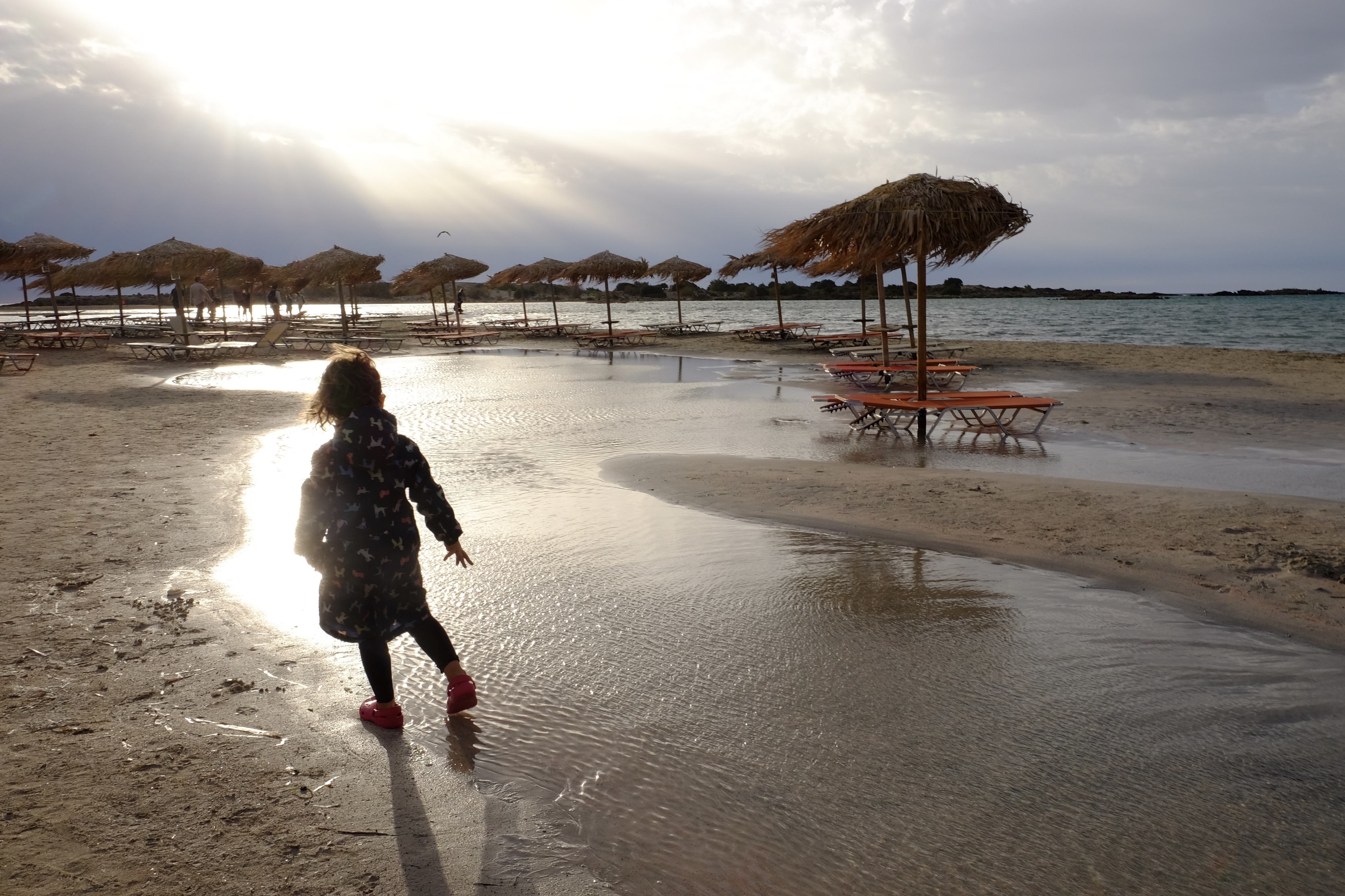 Unsere letzte Station auf der kurzen Reise in den Westen Kretas ist Paleochora. Wir landen auf einem Campingplatz in der illustren Gesellschaft von alten Hippies und Wintergästen, aber zur Freude von Rosa und Stella gibt es hier einen Spielplatz und zu unserer Freude am Abend gutes Bier. In der Nacht hält mit Sturm und Gewitter der Herbst in Kreta Einzug. Auch jetzt überzeugt das Zelt: Drinnen bleibt es wohlig warm und trocken.