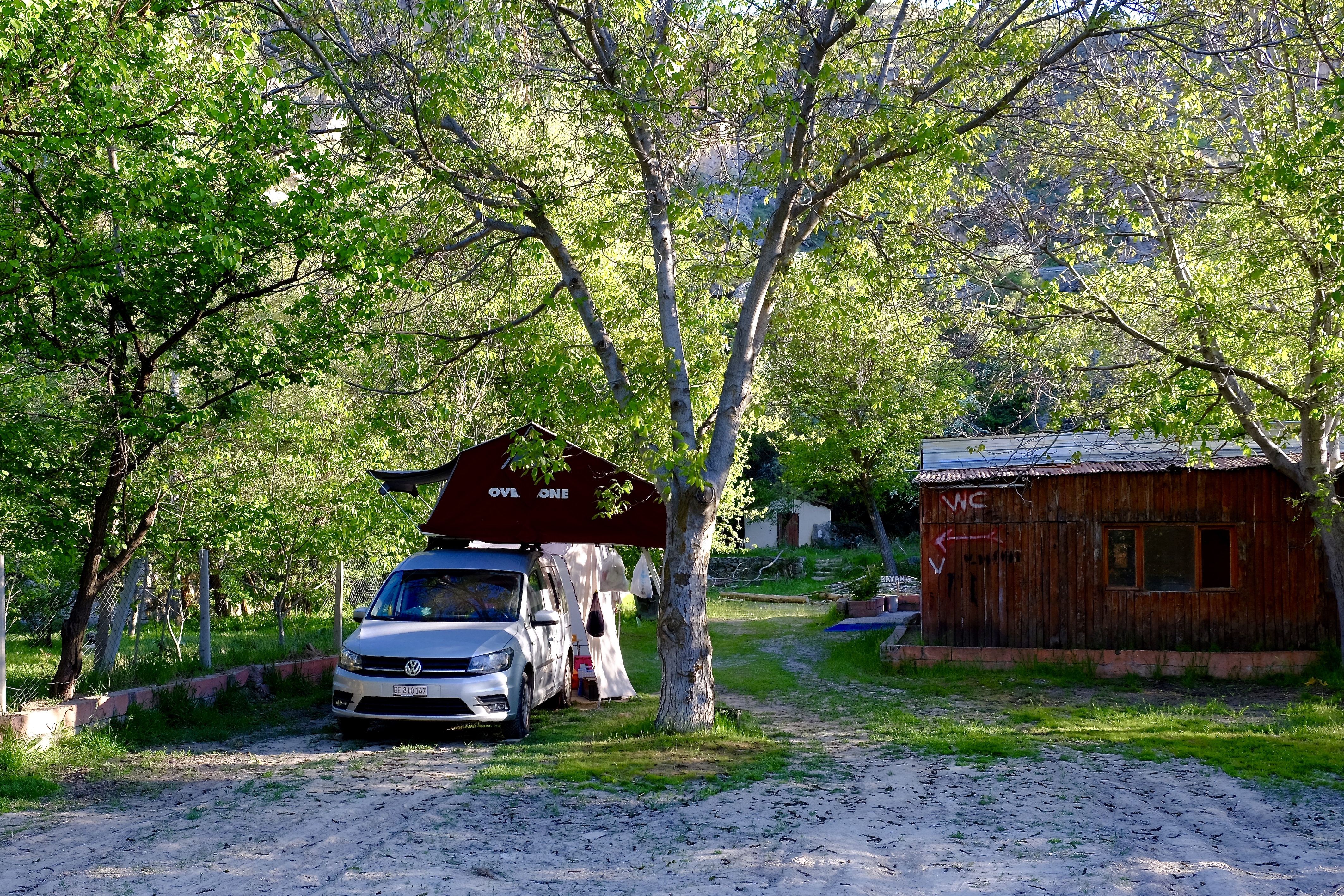 Wir zelten beim Tandirci-Restaurant in Belisirma, einem alten griechischen Dorf in der Mitte der Schlucht. Bald sind wir wieder von einer ganzen Hundeschar umgeben, die uns fortan bellend und wedelnd überallhin begleitet. Zwischendurch kommt es unter den Hunden zu Raufereien. Einmal rempeln sie einander so nahe an unserem Auto an, dass einer von ihnen plötzlich mitten in unserem Heckzelt landet – an einem Haufen mit dem Kochmöbeli, dem Gasrechaud, Pfannen und Geschirr und unter meinem lauten Schimpfen. Zu allem Unglück hat er sich auch noch an einem Hering an der Pfote verletzt. Hundeblut tropft den Plastikteppich voll, aber der Kangal lässt mich die Pfote anschauen und desinfizieren. Als ich ihm aber homöopathische Arnika-Kügelchen geben will, sucht er schnell das Weite.