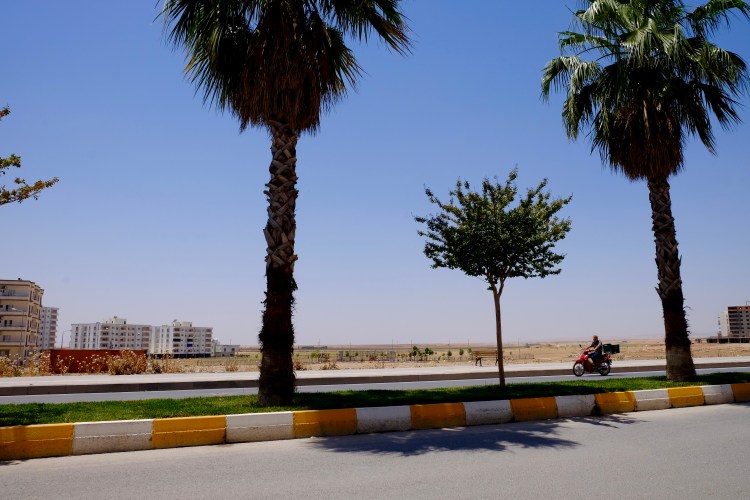 Wir selbst entscheiden uns für einen Mittagshalt in Nusaybin, einer Stadt direkt an der syrischen Grenze. Im Stadtpark essen wir unter hohen Bäumen einen Kebap. Dann beginnt die Fahrt nach Westen. Viele Kilometer lang führt die Schnellstrasse genau der Grenze entlang. Neben der Leitplanke verläuft ein Stacheldrahtzaun, dann kommen ein mehrere hundert Meter breiter Streifen braches Land und schliesslich eine doppelte Mauer. Jenseits der Grenze wieder Land, Felder, Dörfer, und es sieht nicht anders aus als hier.