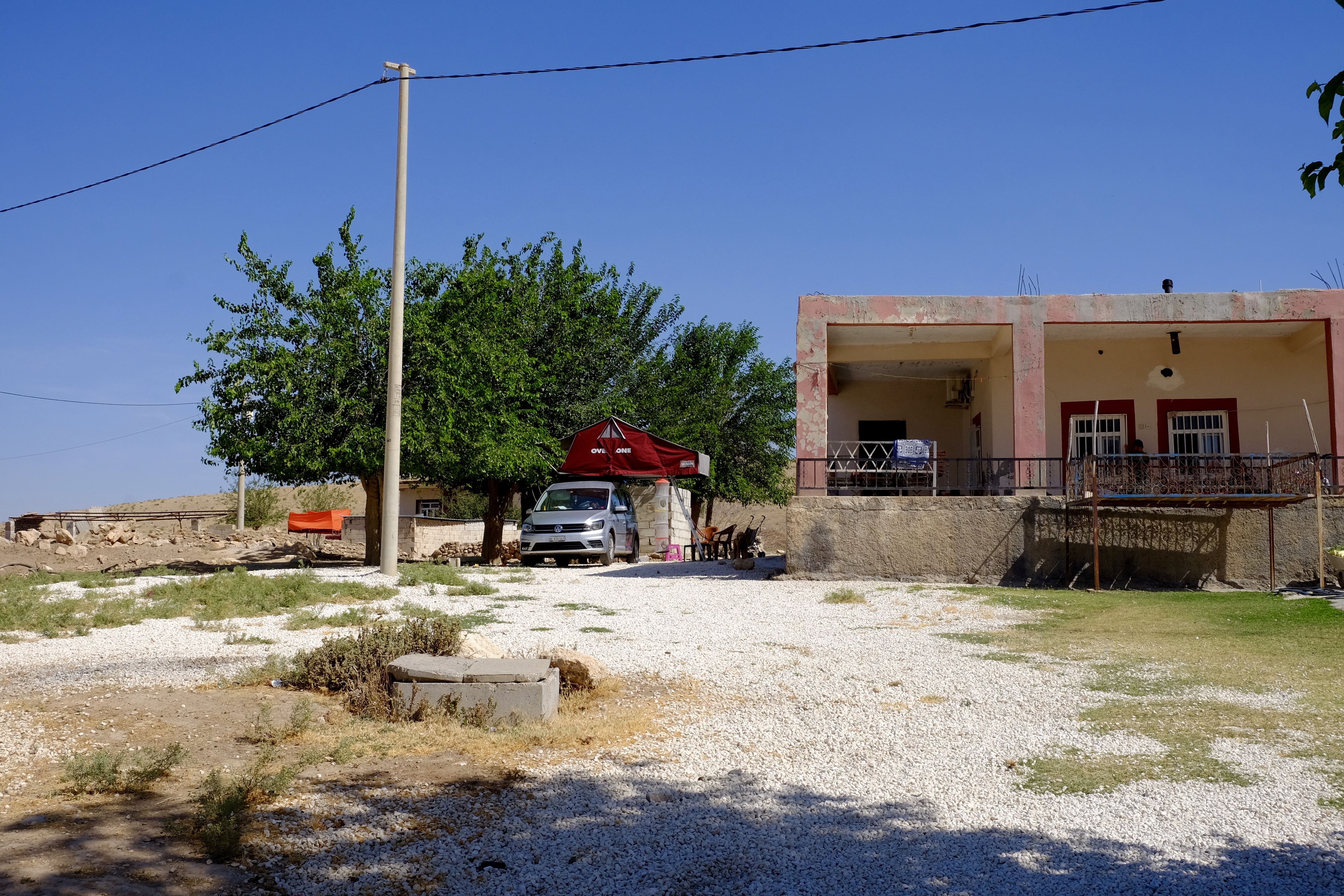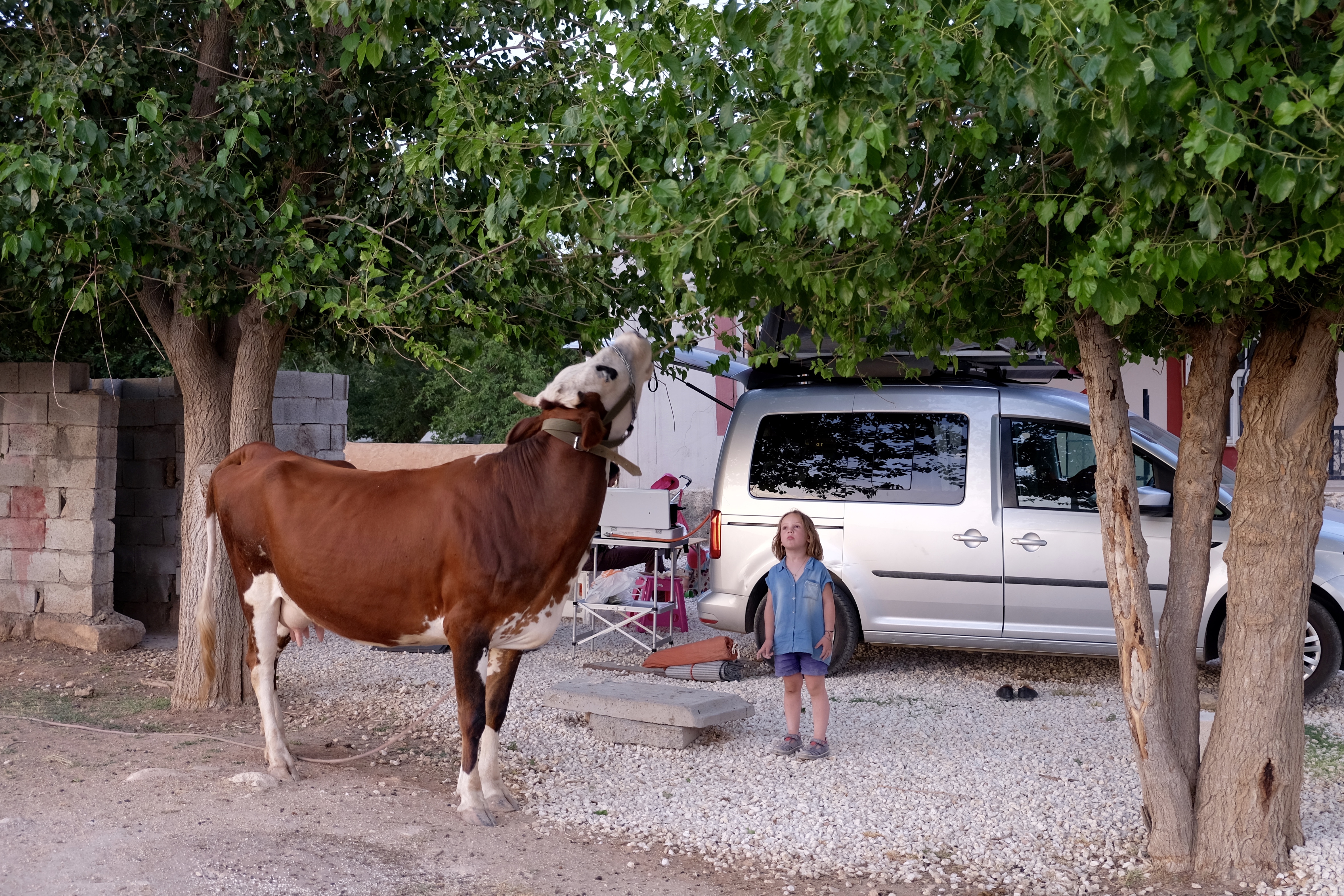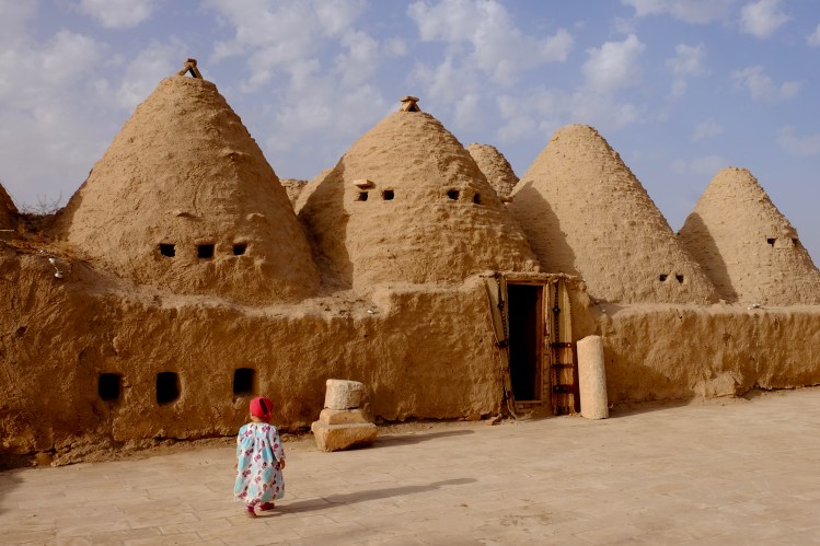 Wir dürfen bei Mehmet und seiner Schwägerin Aishe unter den Maulbeerbäumen unser Dachzelt aufstellen. Rosa erobert sich den roten Traktor von Yusuf, Aishes Sohn, und bald sind die beiden Kinder in ihr Spiel vertieft. Beim Tee mit Aishe und ihrer Tochter Yurdanur erfahren wir, dass die meisten Bewohner von Harran Türkisch nur als Schulfach kennen – im Alltag wird hier ausschliesslich Arabisch gesprochen.