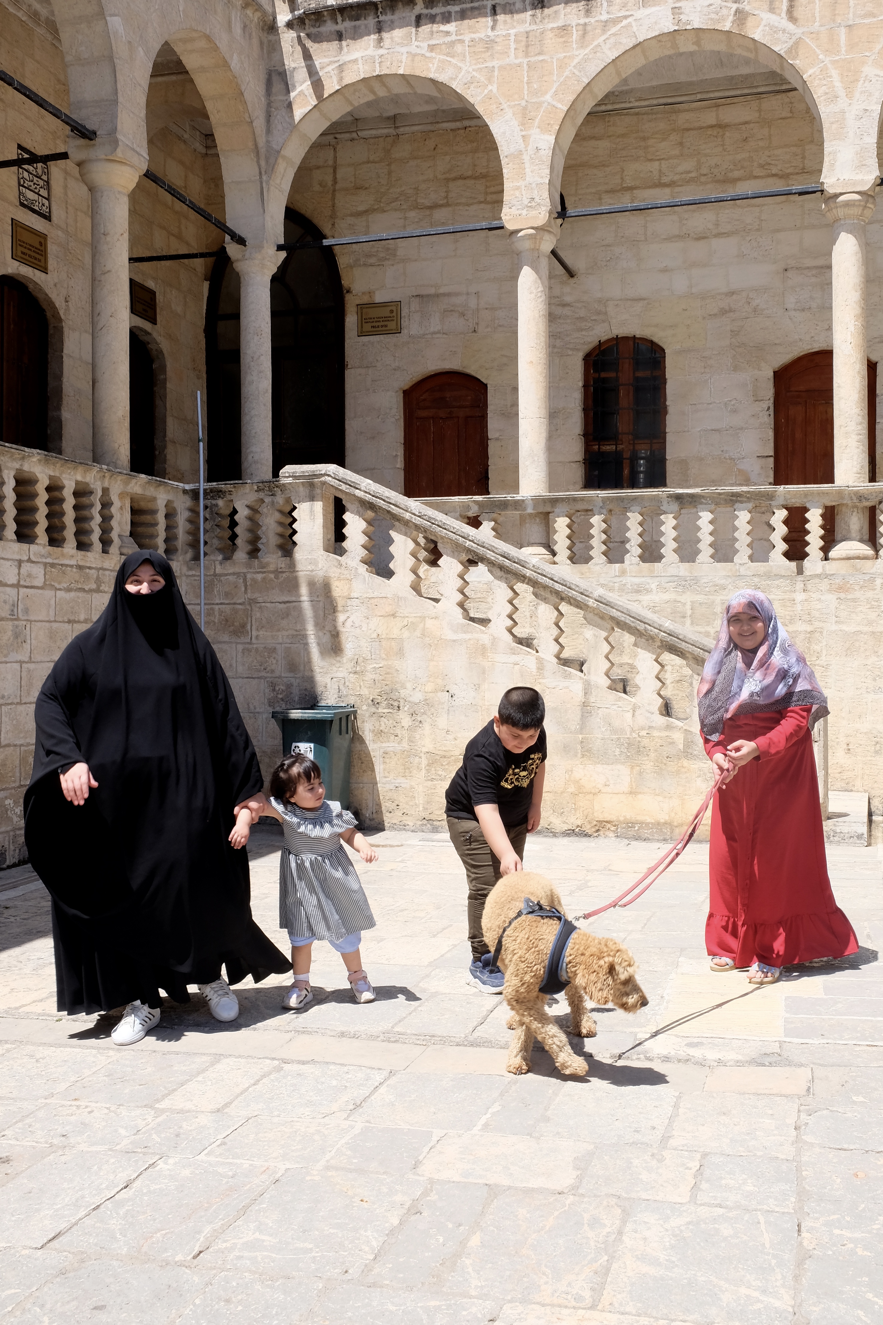 Die grösste Attraktion in Urfa sind heute aber weder Abraham noch seine Fische – sondern unser Milobär. Wir können uns vor Bewunderern gar nicht retten. Was bedeutet, dass wir eigentlich auch fast gar nicht vorwärts kommen. Milo wird bestaunt, gestreichelt, getätschelt, und geknuddelt. Und allein in diesen Stunden in Urfa posiert er mindestens fünfzig Mal für Selfies, Gruppenbilder und Familienfotos. Am Ende unserer Pilgerfahrt nach Urfa ist unser armer Pudel flach wie ein orientalischer Teppich und unendlich froh, als er sich wieder auf der Rückbank unseres Autos zusammenrollen darf.