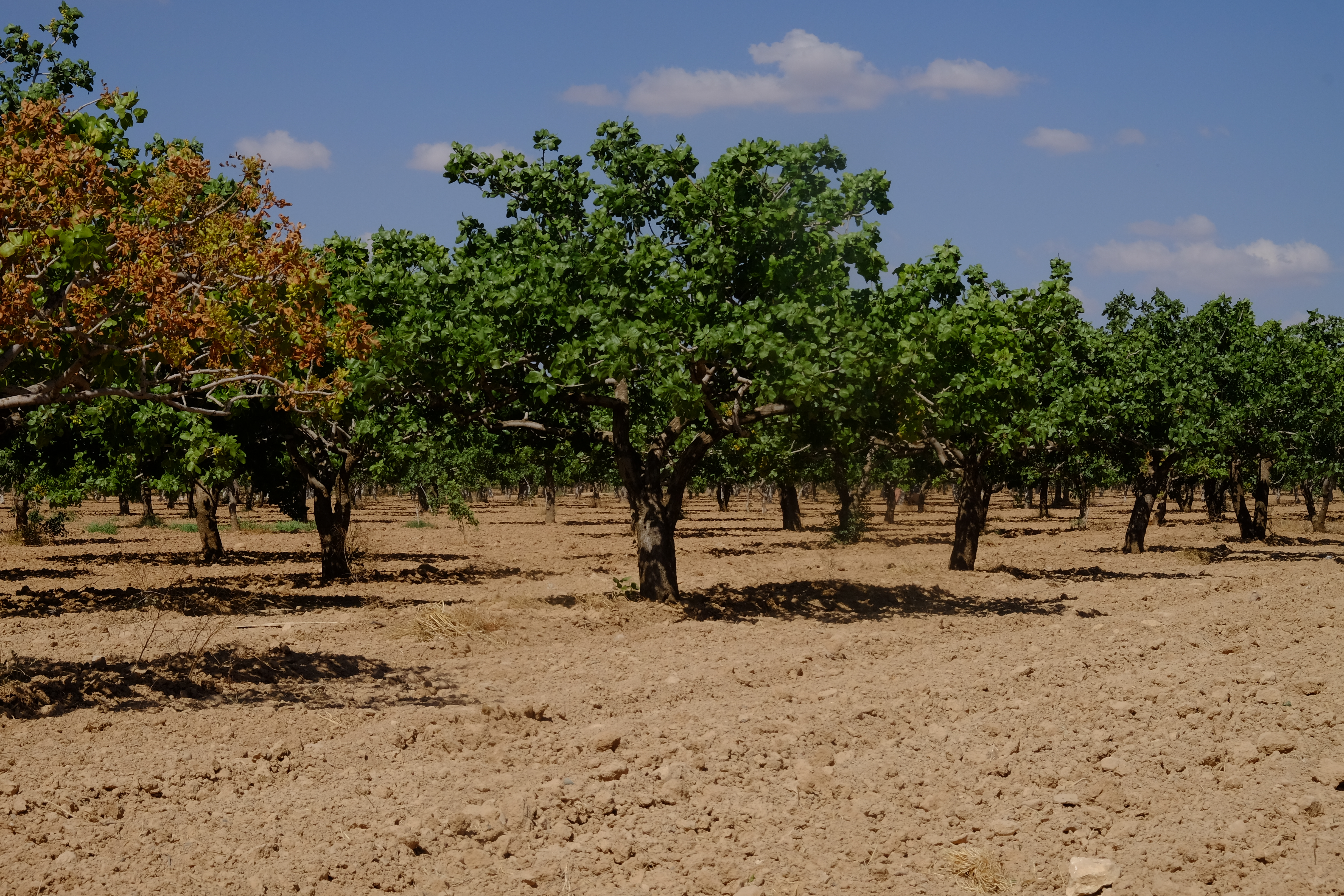 Die Fahrt durch die Tektek-Berge ist nun wirklich eine Fahrt durch die Wüste. Hier gibt es ausser Steinen nichts. Dann tut sich vor uns die Ebene von Harran auf. Bewässert durch Kanäle des Euphrat wächst hier Baumwolle. Die Felder erstrecken sich, so weit das Auge reicht. Schon jetzt im Frühsommer ist es unsäglich heiss. Es ist der Moment, in dem auch ich mir ein Kopftuch umbinde. Ich bin damit nicht allein: Nicht nur die Frauen, auch die Männer tragen hier Tücher auf dem Kopf. Sich dieser Sonne ohne Kopfbedeckung auszusetzen, wäre Wahnsinn.