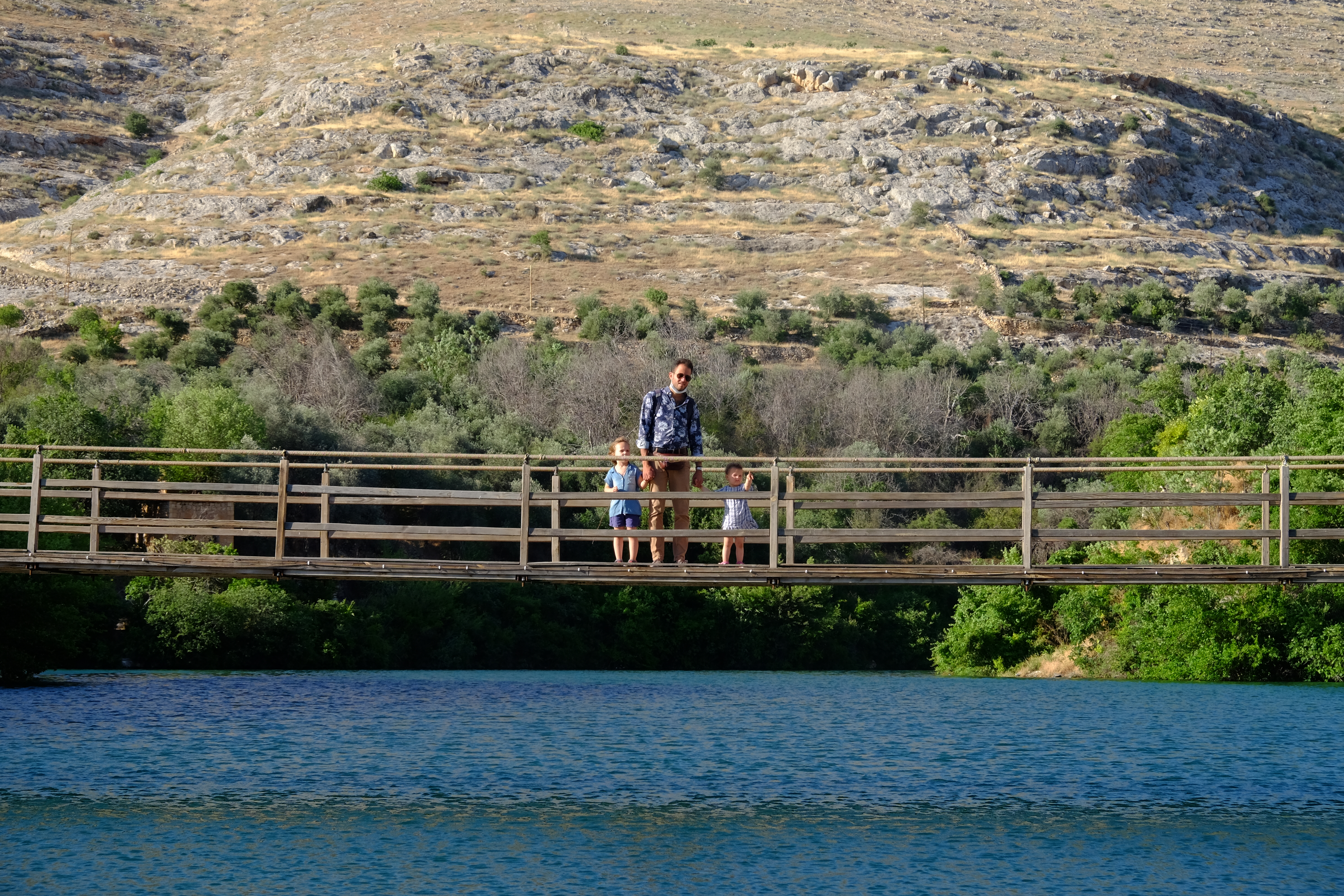 Wir verlassen das Kloster Mor Yakup und fahren in Richtung Süden. Die Landschaft wird noch karger, wir sind jetzt fast in der Wüste. Einzig im Tal unten, wo der Fluss Beyaz Su (Weisses Wasser) fliesst, wachsen üppig Bäume und Pflanzen. Wie eine wuchernde, grüne Schlange windet sich das Vadi, das Tal, durchs vertrocknete Land. Am Wasser reiht sich ein Restaurant ans andere. Hierher kommen die Menschen aus den umliegenden Städten, wenn die Tage im nordmesopotamischen Sommer unerträglich heiss werden.