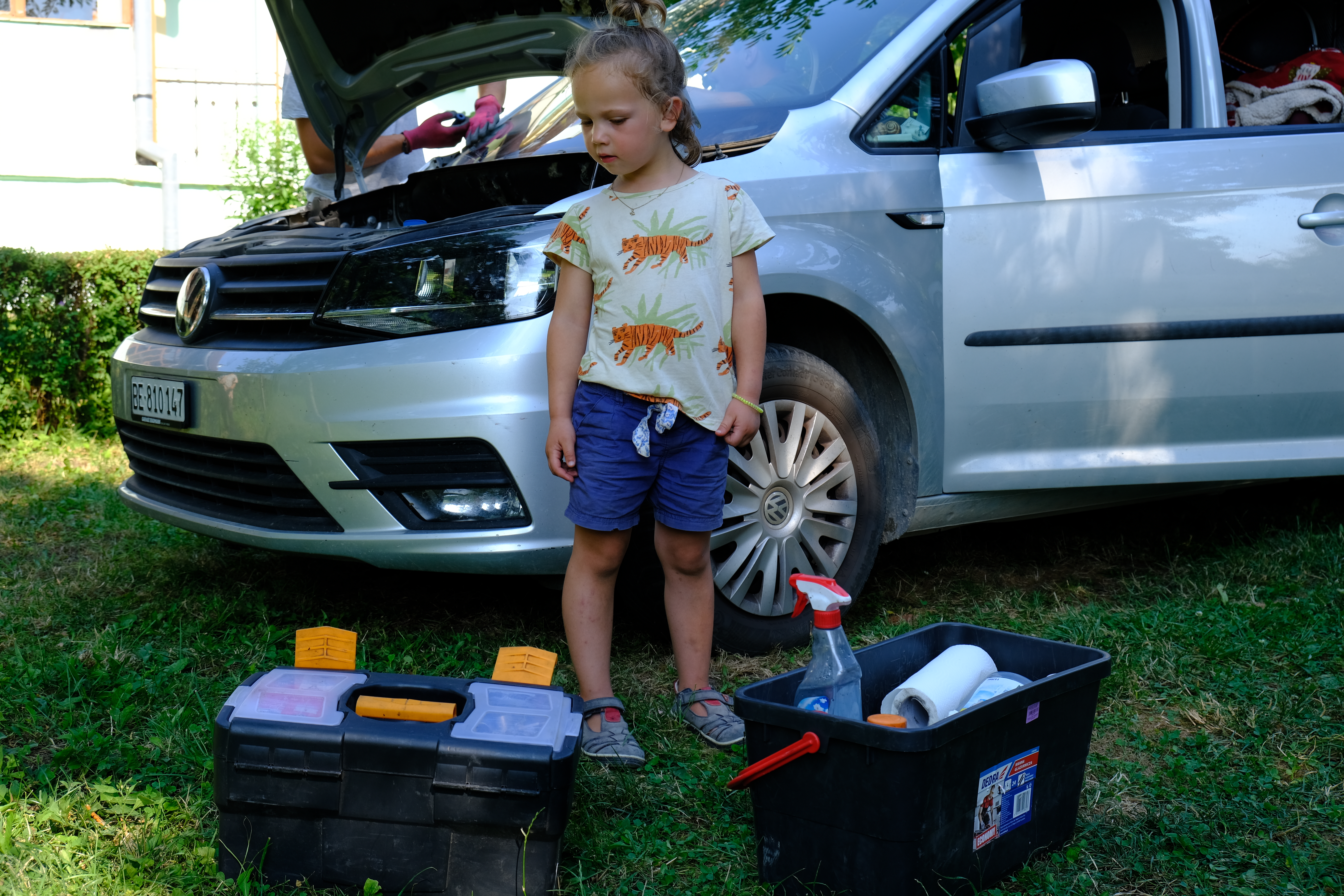 Die Glaser lassen nicht auf sich warten, und es dauert keine halbe Stunde bis die jungen Männer die alte Scheibe entfernt und die neue montiert haben. Wir stellen das Zelt gerade noch rechtzeitig auf. Dann kommen mit heftigen Gewittern der Regen und die Abkühlung, auf die wir seit Tagen gewartet haben.